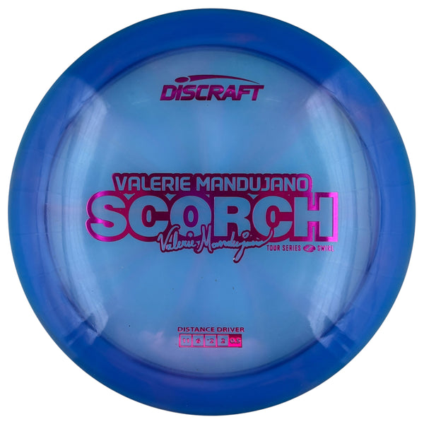 For 2025, Valerie Mandujano went with the Scorch for her Tour Series disc. Offering effortless distance, this disc’s flight is highlighted by an understable high-speed turn that ends with a gentle fade. In Z Swirl, you’ll get enhanced grip and a touch more wind resistance, making it great for rollers, turnovers, or tailwind bombs.