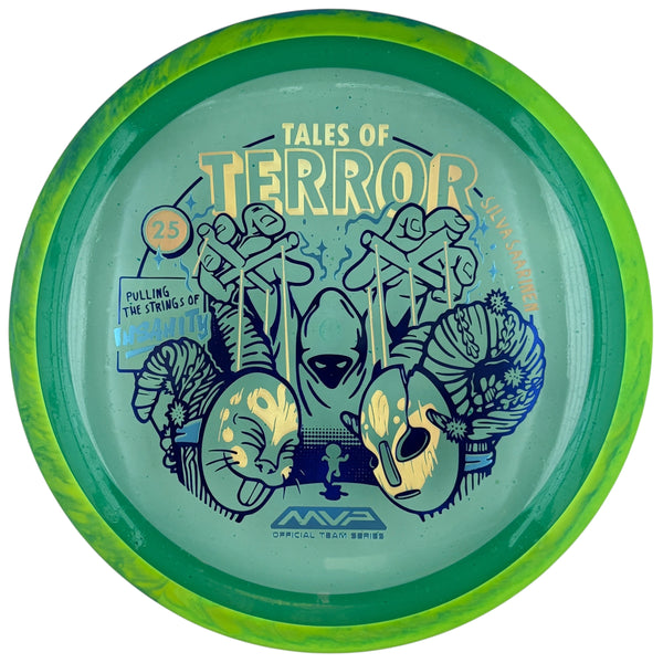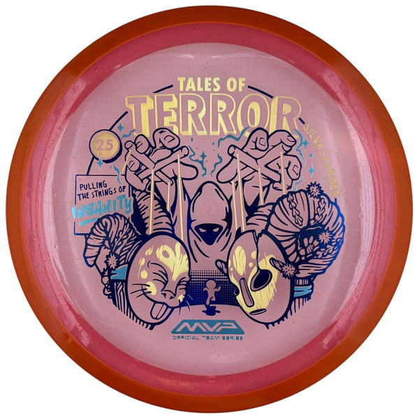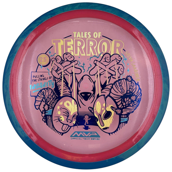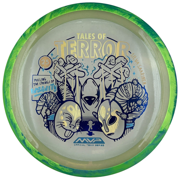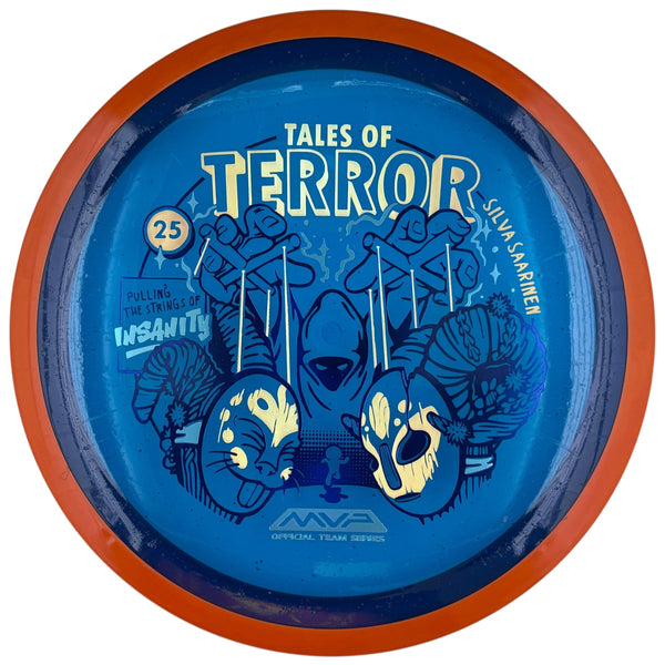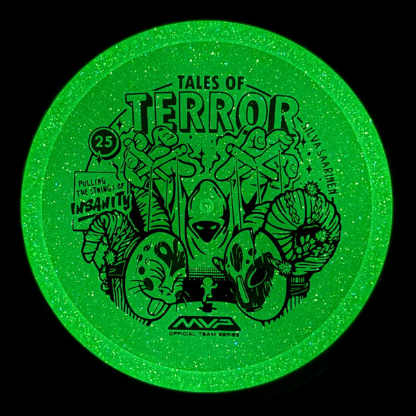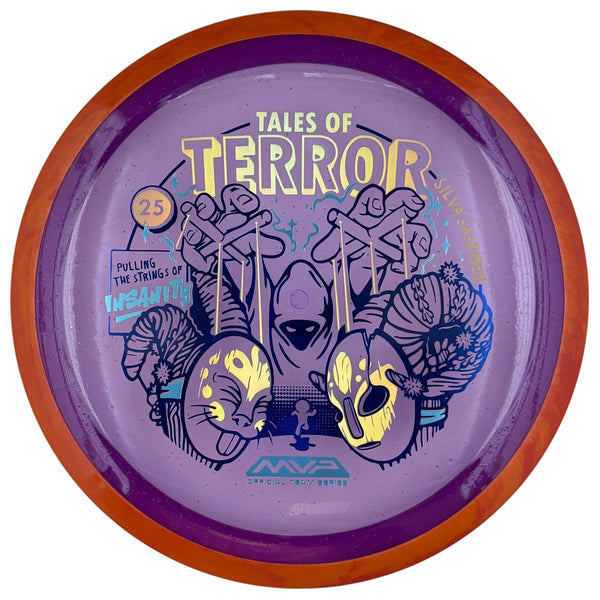 Beware the one pulling the strings during the Finnish Harvest Festival! Stamp newcomer Damian White unveils his first MVP stamp for this Halloween comic inspired design on the Particle Proton Insanity, a warning that some ornaments created for this event are a bit more ghoulish than they appear. The Insanity is a stable-understable driver that players will find easy to manipulate, with average power throws being remarkably straight with forward pushing fade, and higher power throws resulting in precise hyzer-flips, turnovers, and beautiful s-lines. Don’t let the course pull your strings - grab a Particle Proton Insanity today and prove who the true master is.