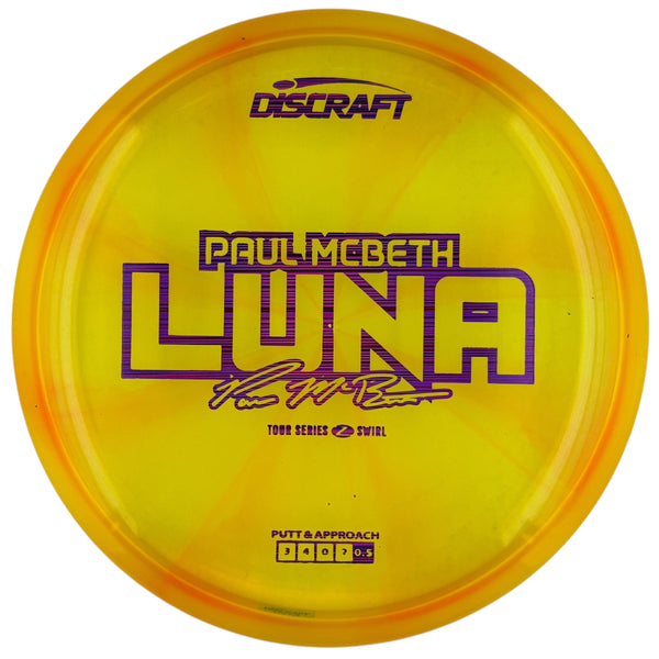 The Luna returns to the Tour Series lineup in Z Swirl plastic—bringing together grip, glide, and confidence in one of the most versatile putt and approach discs ever made. Known for its neutral flight and exceptional control, the Luna shines on the tee, in the circle, and everywhere in between. The 2025 Z Swirl edition offers a touch more stability and a tacky hand feel, giving players even more confidence when shaping lines or attacking the basket.