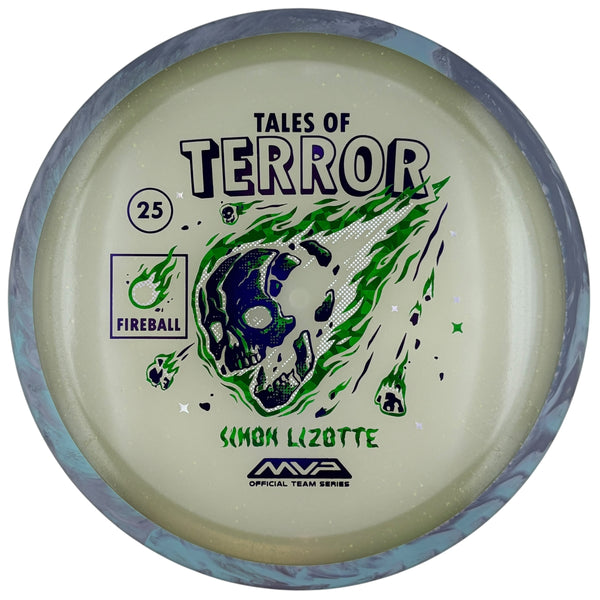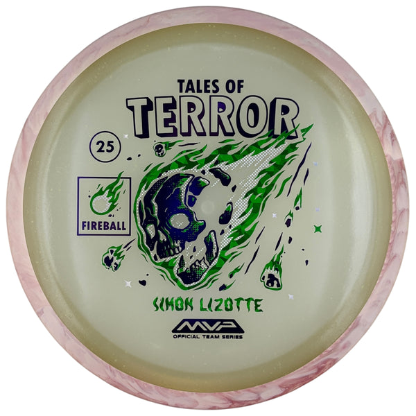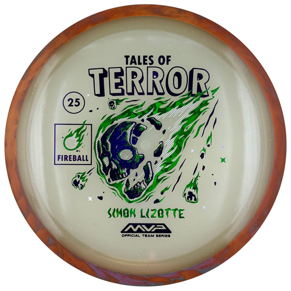 Our first release in our new Particle Eclipse plastic is the Particle Eclipse Fireball! Hurtling towards a catastrophic fate in this stamp brought to us by Matthew Jorde, this flaming doom has never looked better. Made with our industry-leading Eclipse plastic, this new blend of glow with colorful particles inside accentuates the otherworldly feel of this space faring skull about to rain down upon us. Equally suited to backhands and forehands, the Fireball is an overstable driver perfect for wind fighting and situations when you need the dependable hook of its high fade for accurate placement shots. Wreak havoc on the course by grabbing your own Particle Eclipse Fireball today!