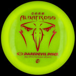 A dependable very overstable distance driver that flies great in the wind with a predictable fade. It will hold a straight line and glide forever before making a sharp fading finish. The super slick durable ‘High Performance’ plastic will hold up in any terrain and has a firm feel to the rim with a great comfortable grip. Not for beginners or players with slow arm speed.