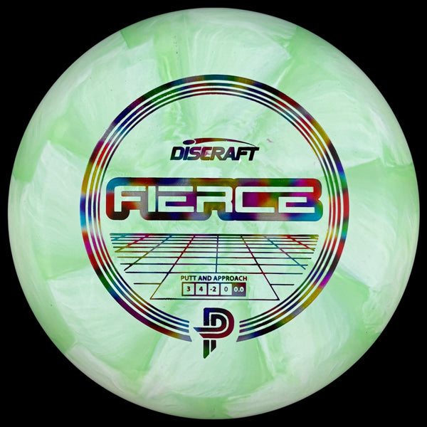 The first disc in the Paige Pierce line, the Fierce putter! The Fierce is a straight flying, understable putter that was designed along with Paige Pierce to create a small diameter putter with a good hand feel for players of all sizes. The Fierce putter demonstrates straight flights with effortless glide and excels at understable turnover approaches.