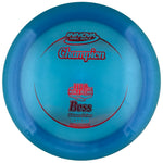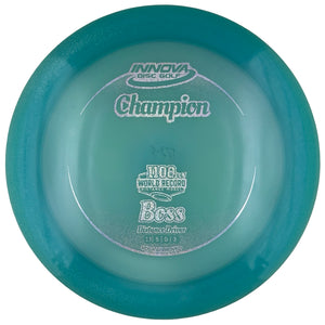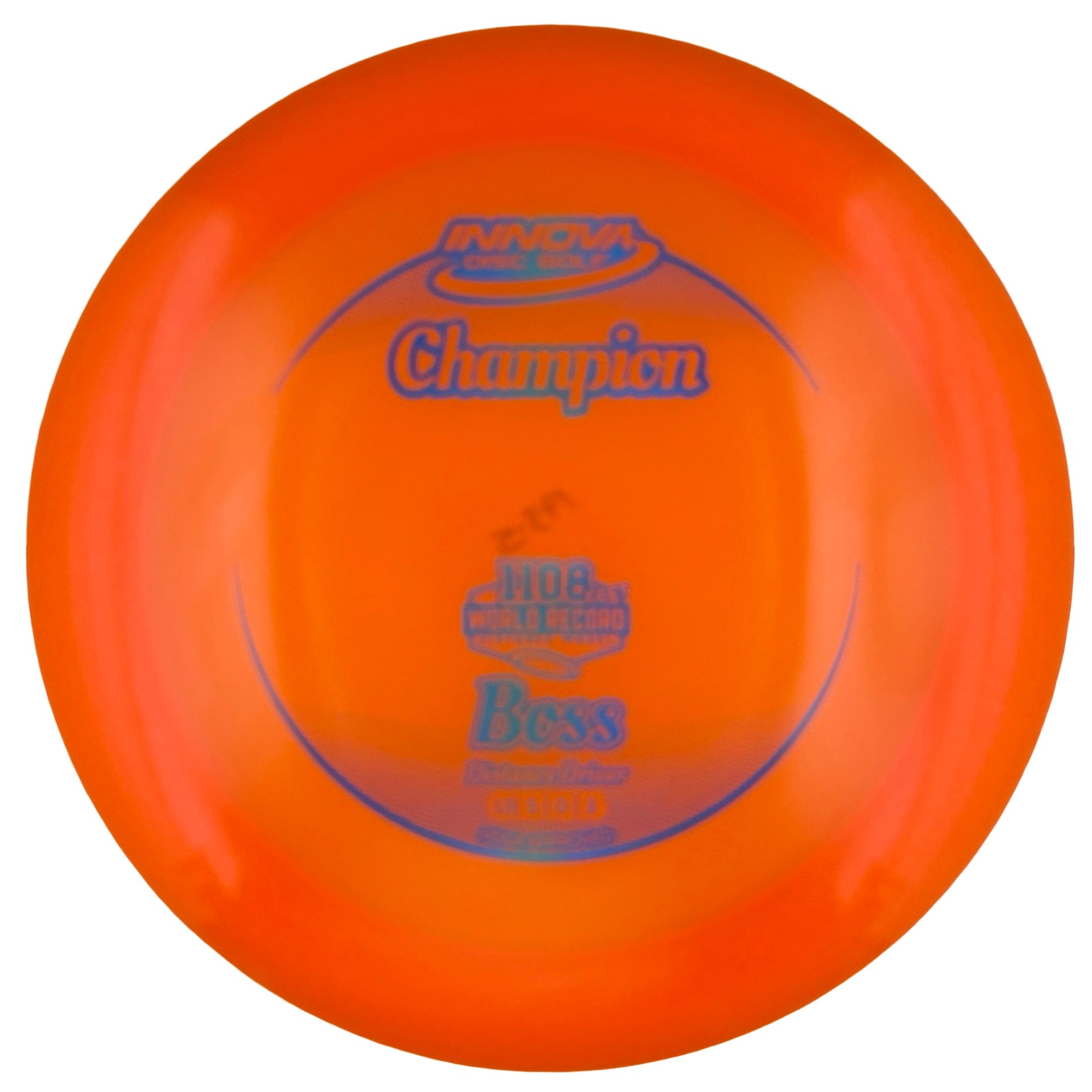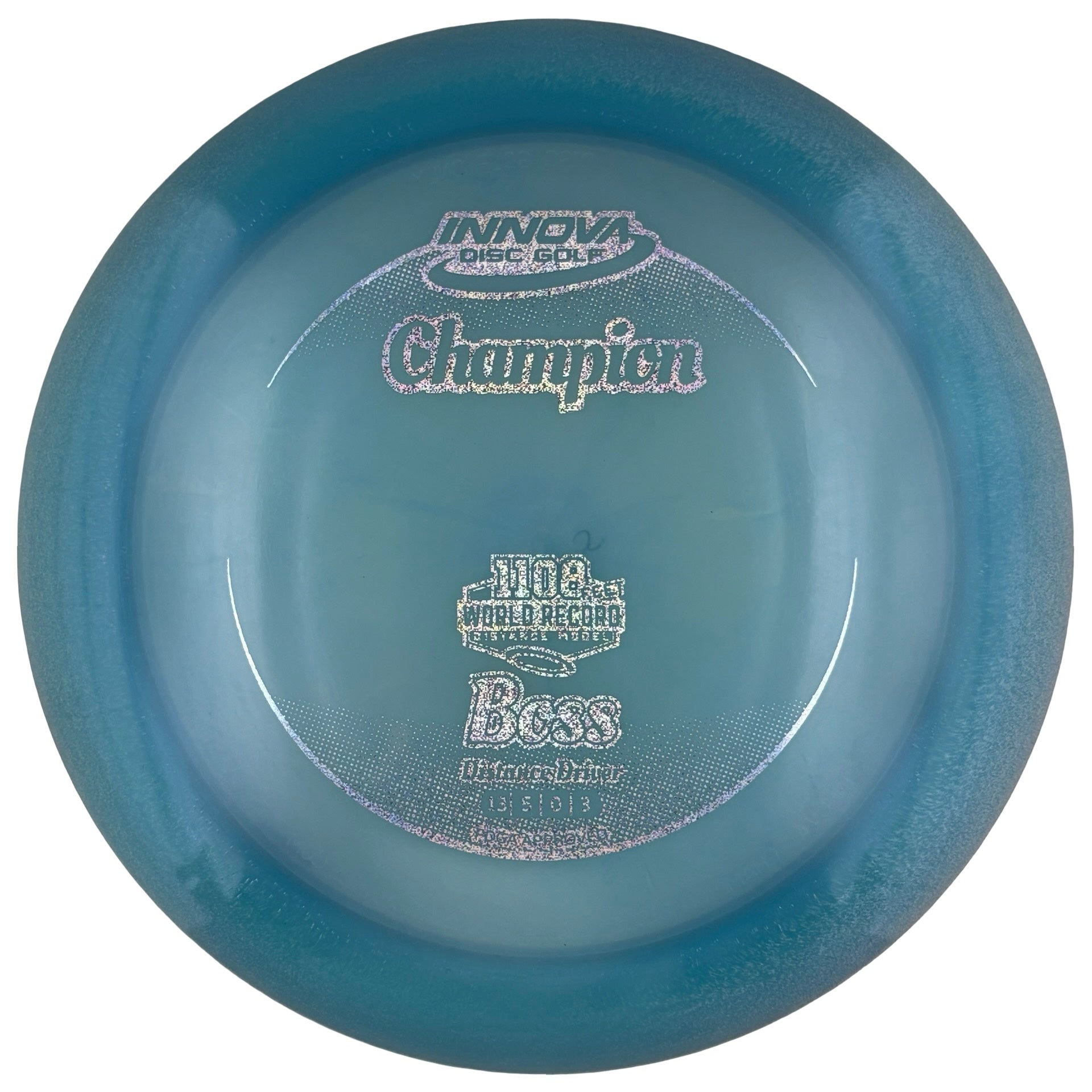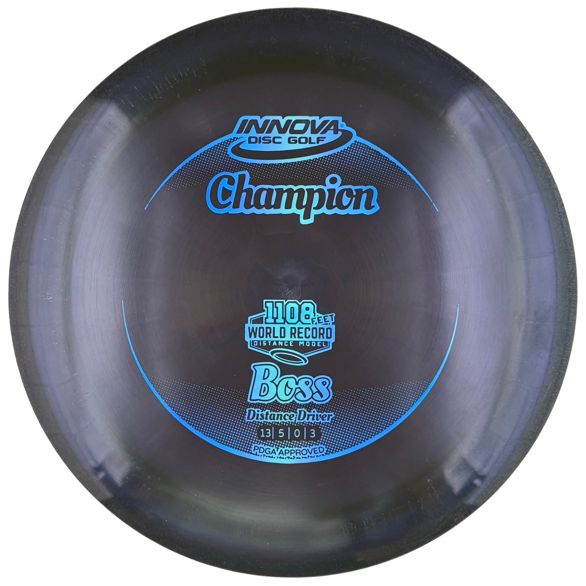 This is a fast stable driver that can handle full power throws and moderate headwinds. Advanced players and sidearm throwers will appreciate the dependable stability. The Boss has a slight high speed turn to help maximize distance with a predictable fade. David Wiggins Jr used a 154 gram R-Pro Boss to set the World Record 338 M (1108.92 feet) for the longest throw in March 2016. The Champion Boss flight numbers reflect its more stable flight.