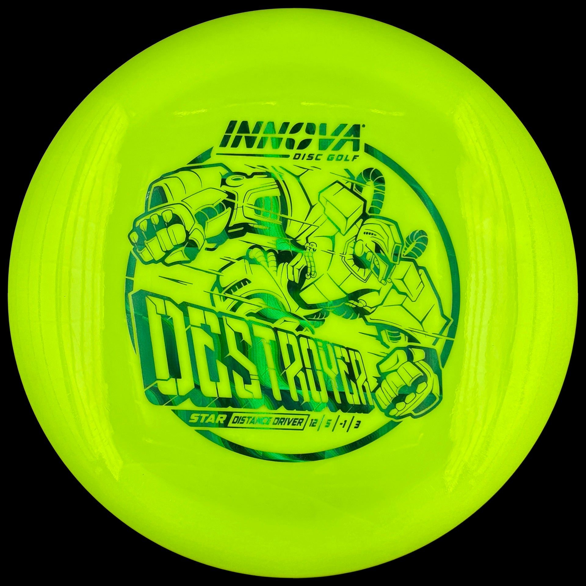 The Destroyer is a very fast stable long distance driver. This disc is much like a faster Wraith, but with a little more high and low speed stability. Great disc for sidearm throwers and those with lots of power. Can handle headwinds and throws with off axis torque.
